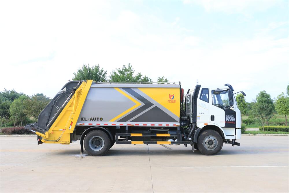 上裝配置:垃圾箱容積:12方,新款平面弧形廂體,廂體材料為武鋼優質碳鋼,PLC一鍵操作**,手電一體操作模式,兩側雙電控,帶駕駛室內操作,底板支撐加強,雙向壓縮,開放式易清潔污水箱。壓縮式垃圾車采用機電液一體化技術,借助機、電、液聯合自動**系統、電腦**、手動操作系統,通過填裝器和推鏟等專用裝置,實現垃圾倒入、壓碎或壓扁、強力裝填,把垃圾擠入車廂并壓實和推卸,污水全部進入污水廂,解決了垃圾運輸過程中的二次污染的問題。壓縮式垃圾車具有自動反復壓縮以及蠕動壓縮功能,壓縮比高、密封性好、裝載量大﹑操作方便、環保性好﹑整車利用功率高等優點。作業自動化,垃圾收集方式簡便、高效。后翻轉機構選裝:1、掛塑料桶式翻轉機構;2、掛鐵桶式翻轉機構;3、擺臂式翻轉機構; 4、簸箕斗式翻轉機構。