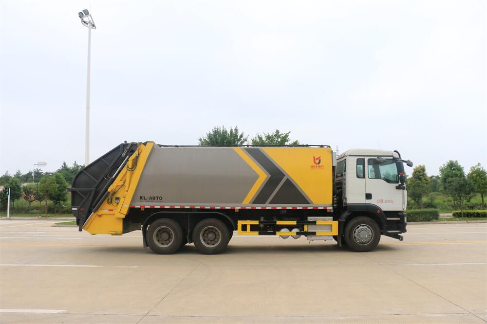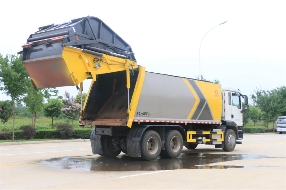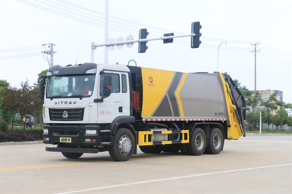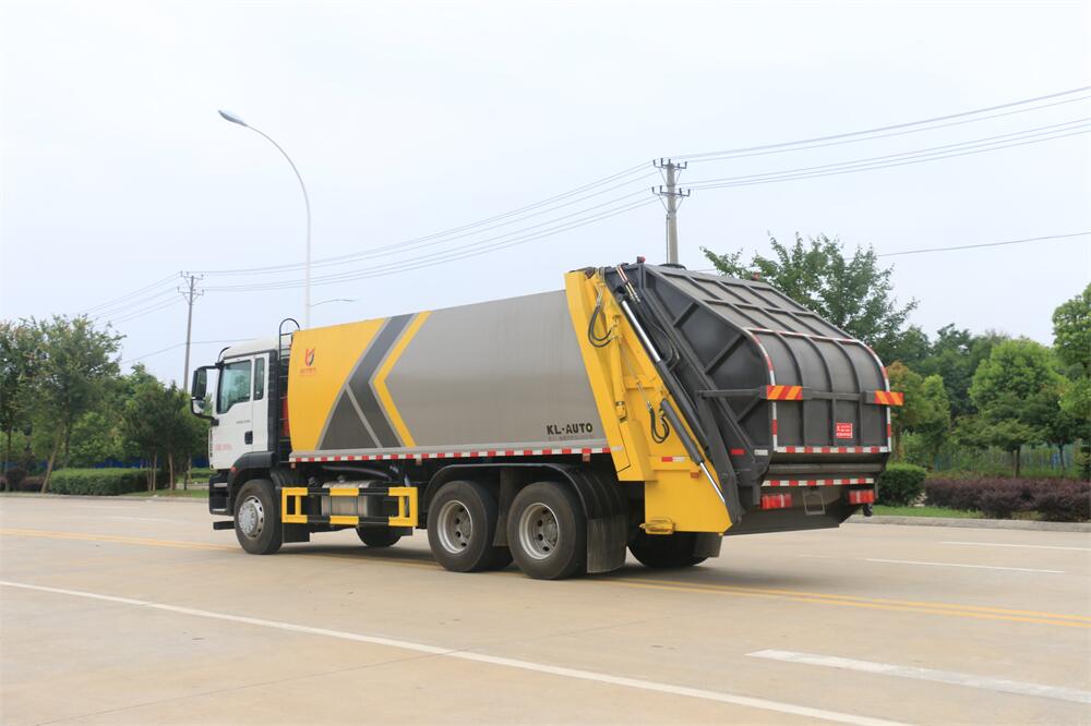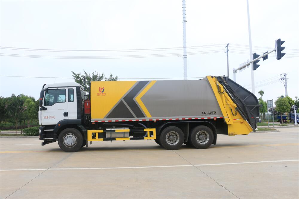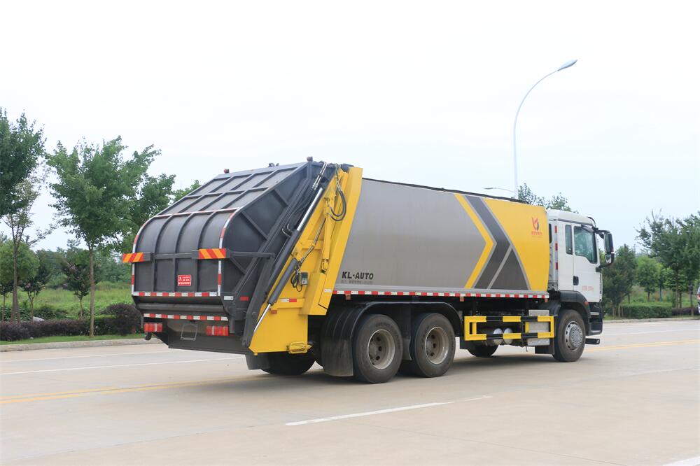 上裝配置:垃圾箱容積:20方,新款平面弧形廂體,廂體材料為武鋼優質碳鋼,PLC一鍵操作**,手電一體操作模式,兩側雙電控,帶駕駛室內操作,底板支撐加強,雙向壓縮,開放式易清潔污水箱。壓縮式垃圾車采用機電液一體化技術,借助機、電、液聯合自動**系統、電腦**、手動操作系統,通過填裝器和推鏟等專用裝置,實現垃圾倒入、壓碎或壓扁、強力裝填,把垃圾擠入車廂并壓實和推卸,污水全部進入污水廂,解決了垃圾運輸過程中的二次污染的問題。壓縮式垃圾車具有自動反復壓縮以及蠕動壓縮功能,壓縮比高、密封性好、裝載量大﹑操作方便、環保性好﹑整車利用功率高等優點。作業自動化,垃圾收集方式簡便、高效。后翻轉機構選裝:1、掛塑料桶式翻轉機構;2、掛鐵桶式翻轉機構;3、擺臂式翻轉機構; 4、簸箕斗式翻轉機構。