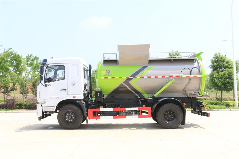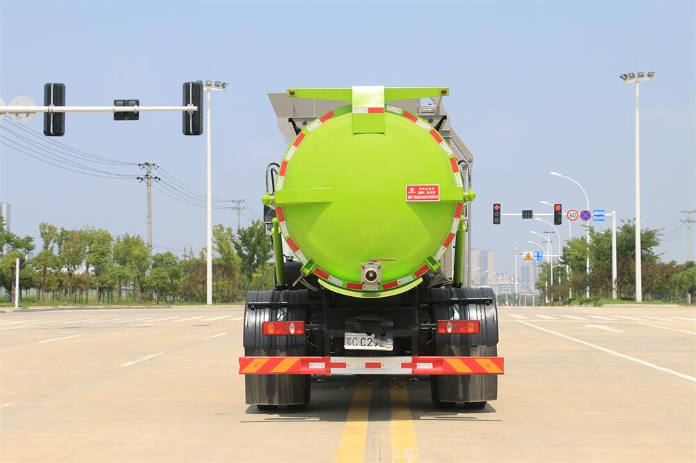 上裝配置:罐體容積10m3,配備120L/240L掛桶提升翻轉(zhuǎn)機構(gòu),液壓系統(tǒng),后蓋液壓鎖緊開啟,罐體可以舉升自卸,尾部帶自流閥;用于運輸液態(tài)垃圾,其特點操作簡單,密封性好,無泄漏,無異味;可選裝固液分離功能,推板擠壓功能,常用于餐館的垃圾轉(zhuǎn)運處理。