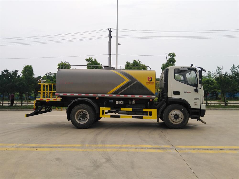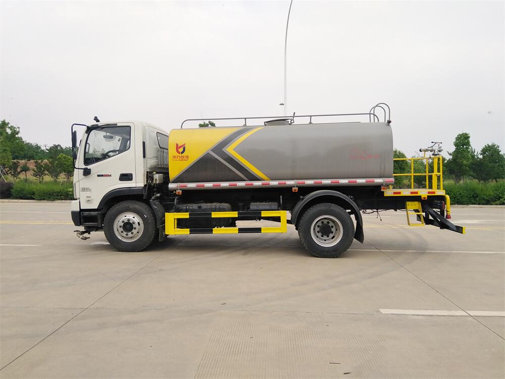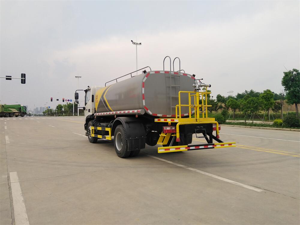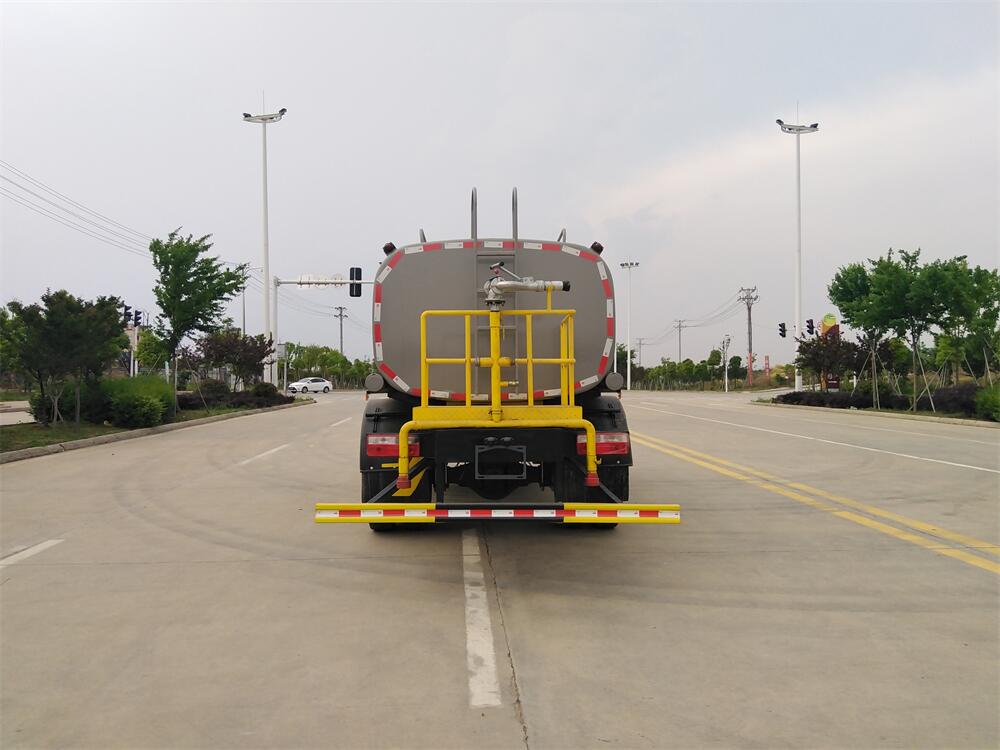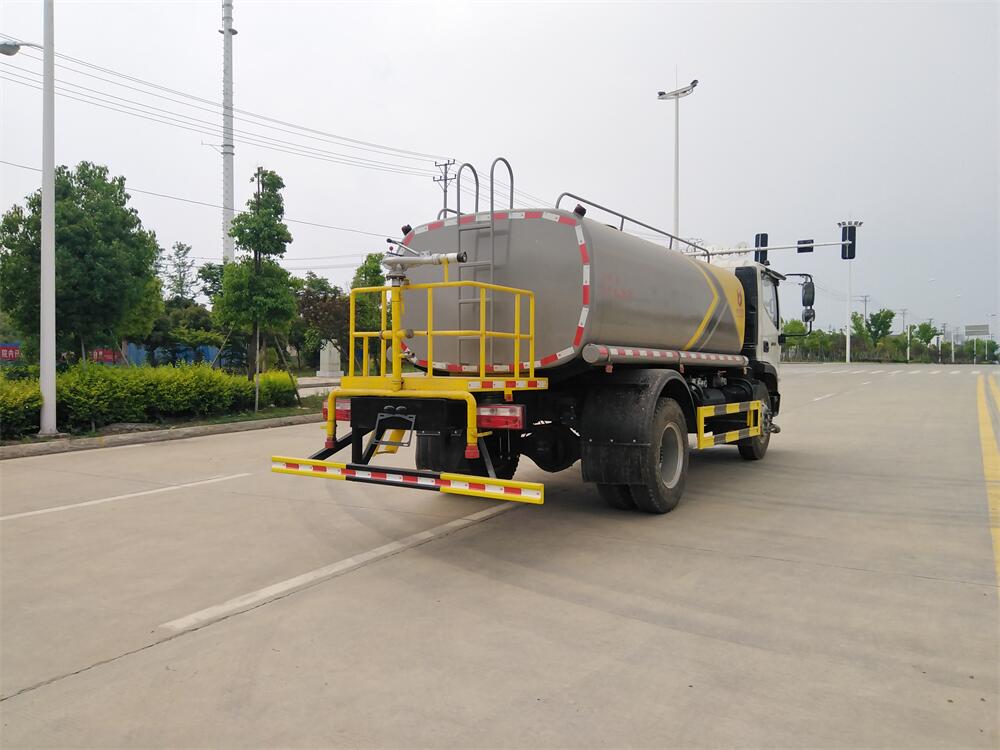 灑水車前裝有鴨形噴嘴或圓頭沖嘴,后面裝有圓柱開灑水噴嘴或蓮蓬頭噴嘴,后部有一工作平臺,裝配有水炮。后部還可裝8個(gè)噴嘴(選裝)。