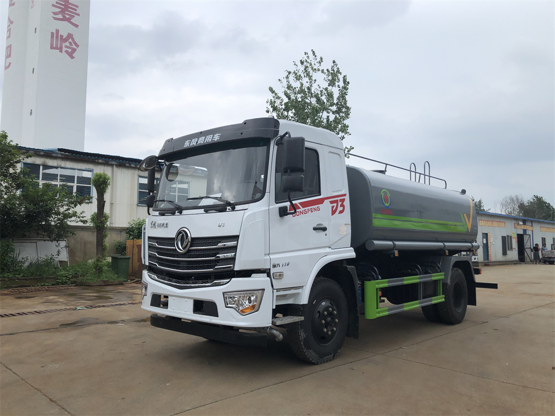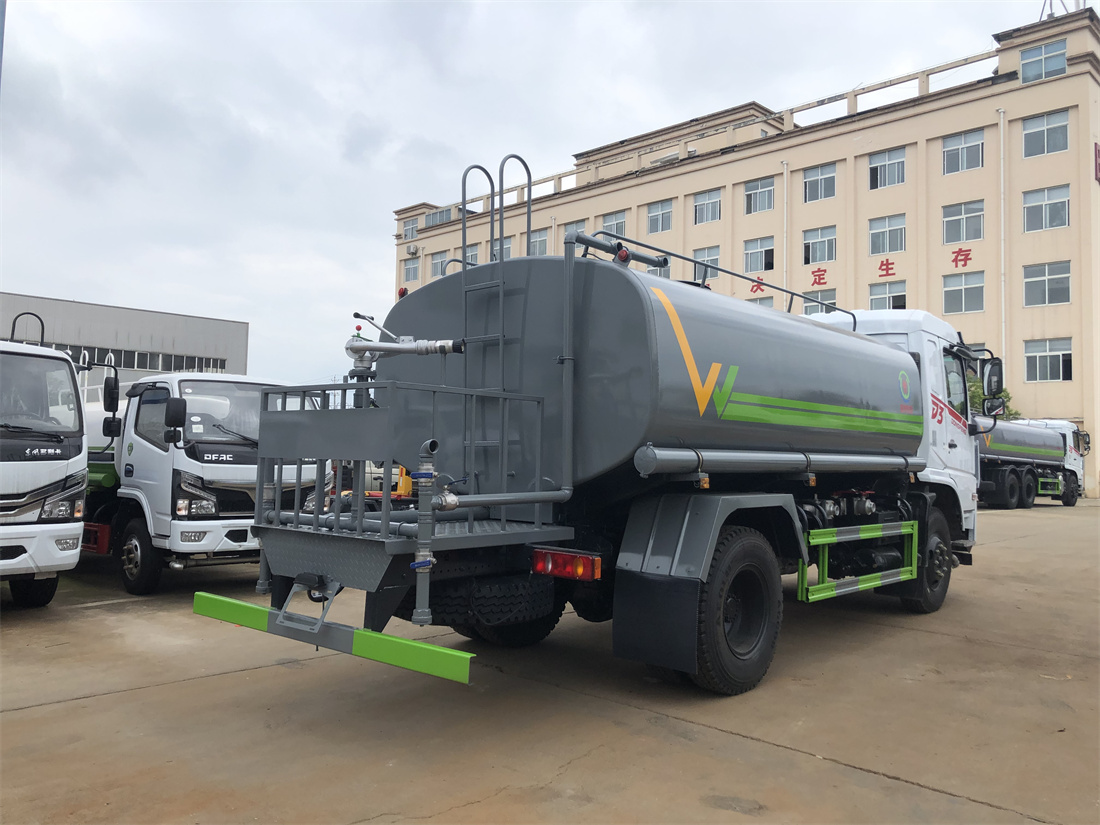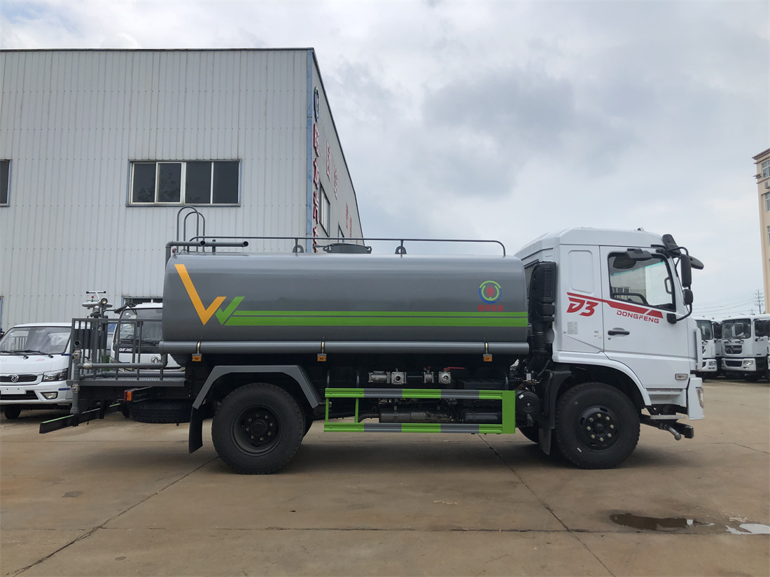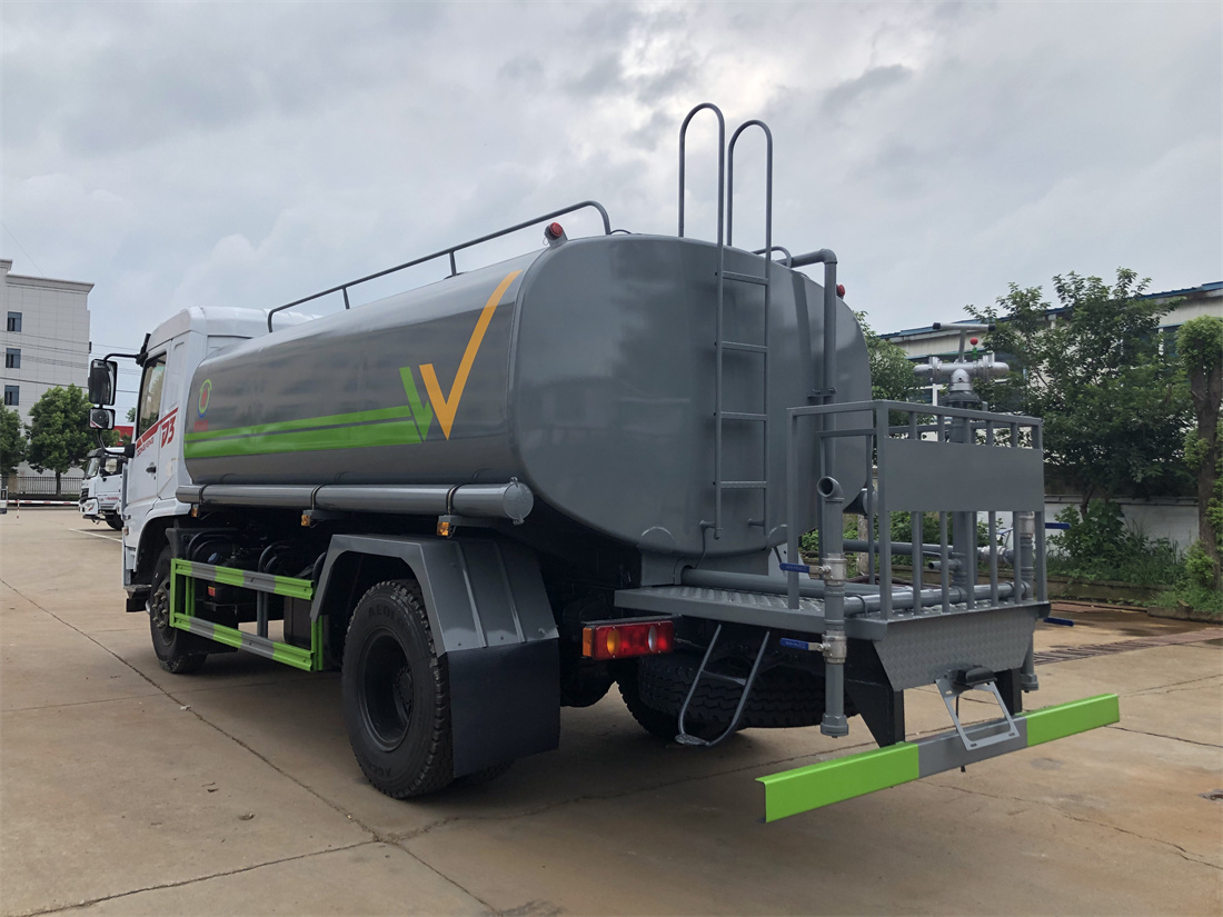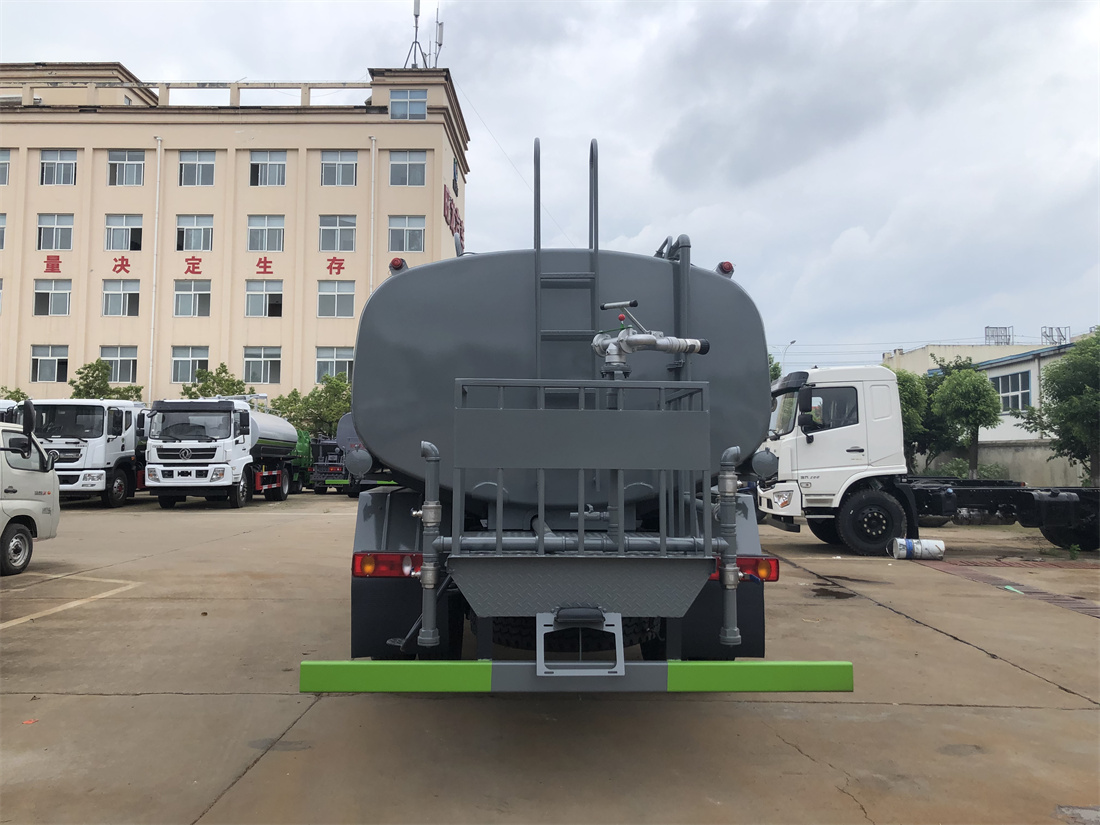 灑水車前裝有鴨形噴嘴或圓頭沖嘴,后面裝有圓柱開灑水噴嘴或蓮蓬頭噴嘴,后部有一工作平臺,裝配有水炮。后部還可裝8個噴嘴(選裝)。