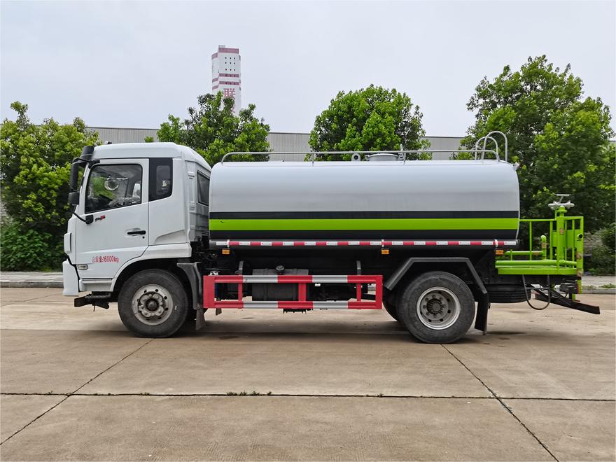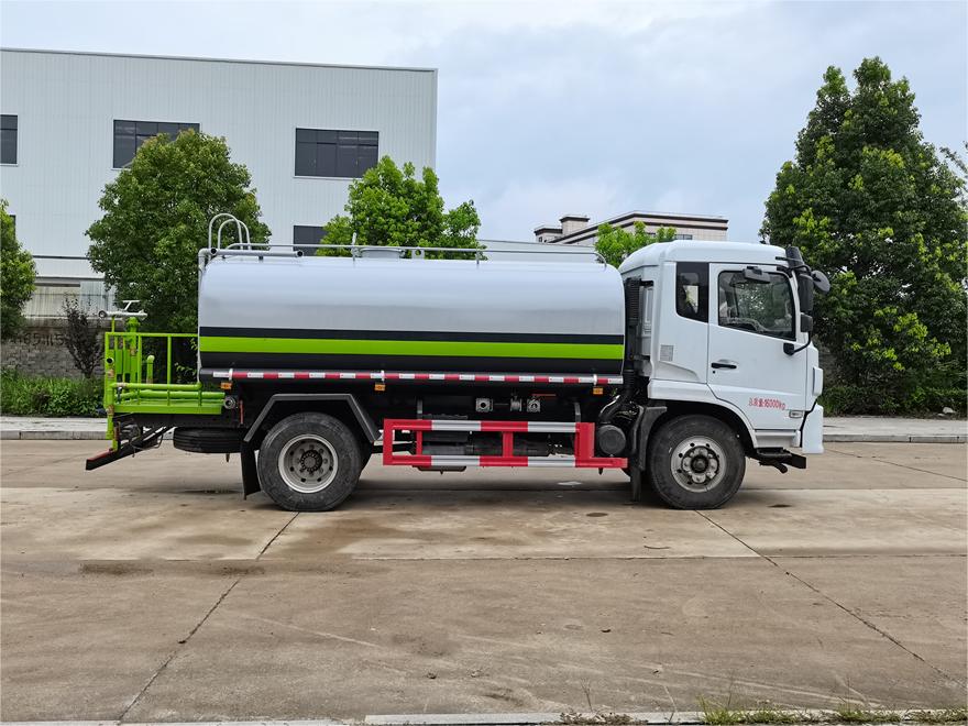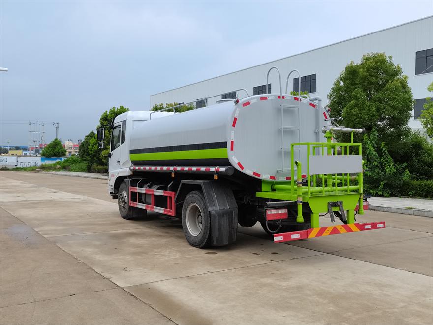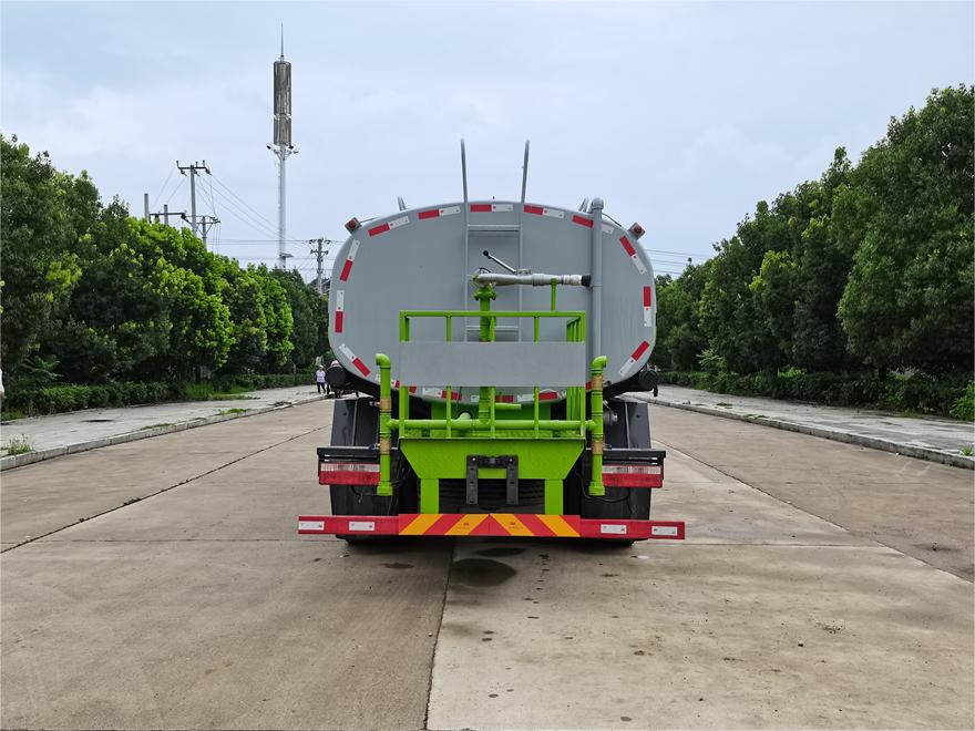 灑水車前裝有鴨形噴嘴或圓頭沖嘴,后面裝有圓柱開灑水噴嘴或蓮蓬頭噴嘴,后部有一工作平臺,裝配有水炮。后部還可裝8個(gè)噴嘴(選裝)。