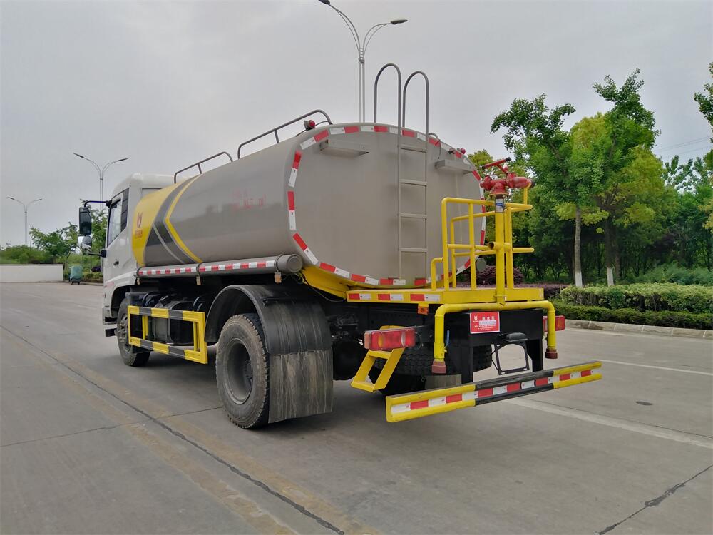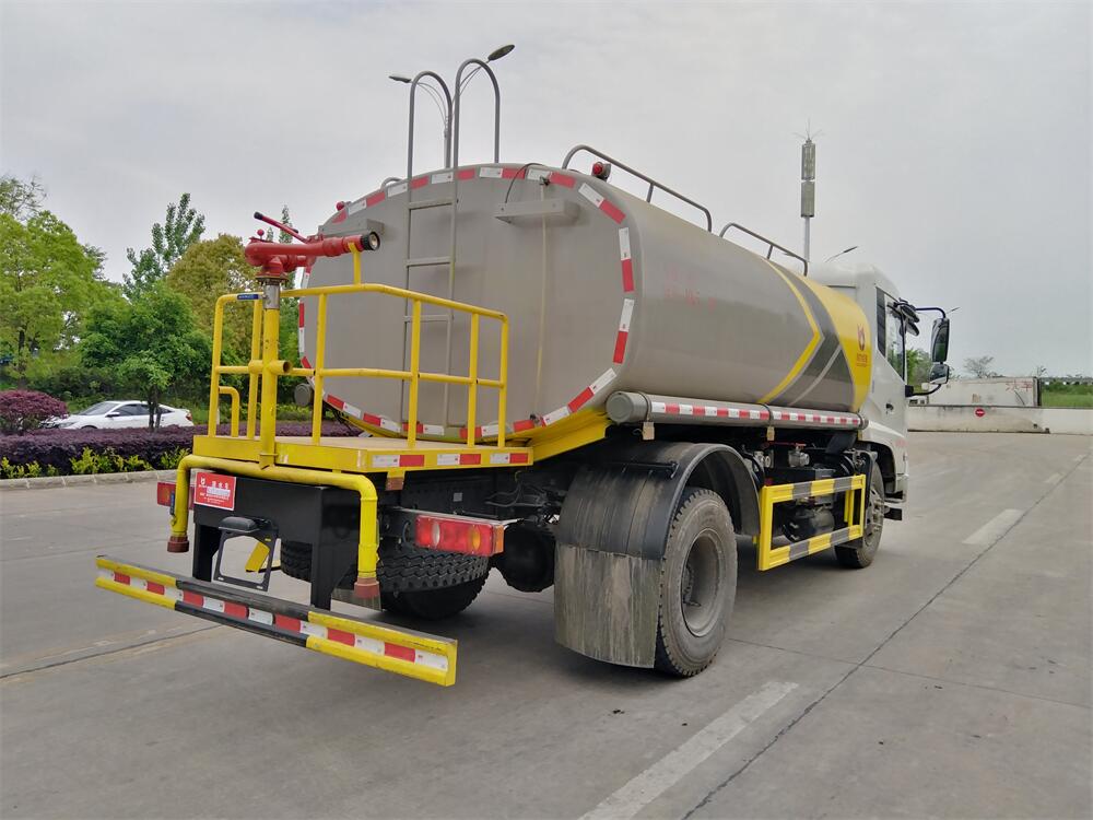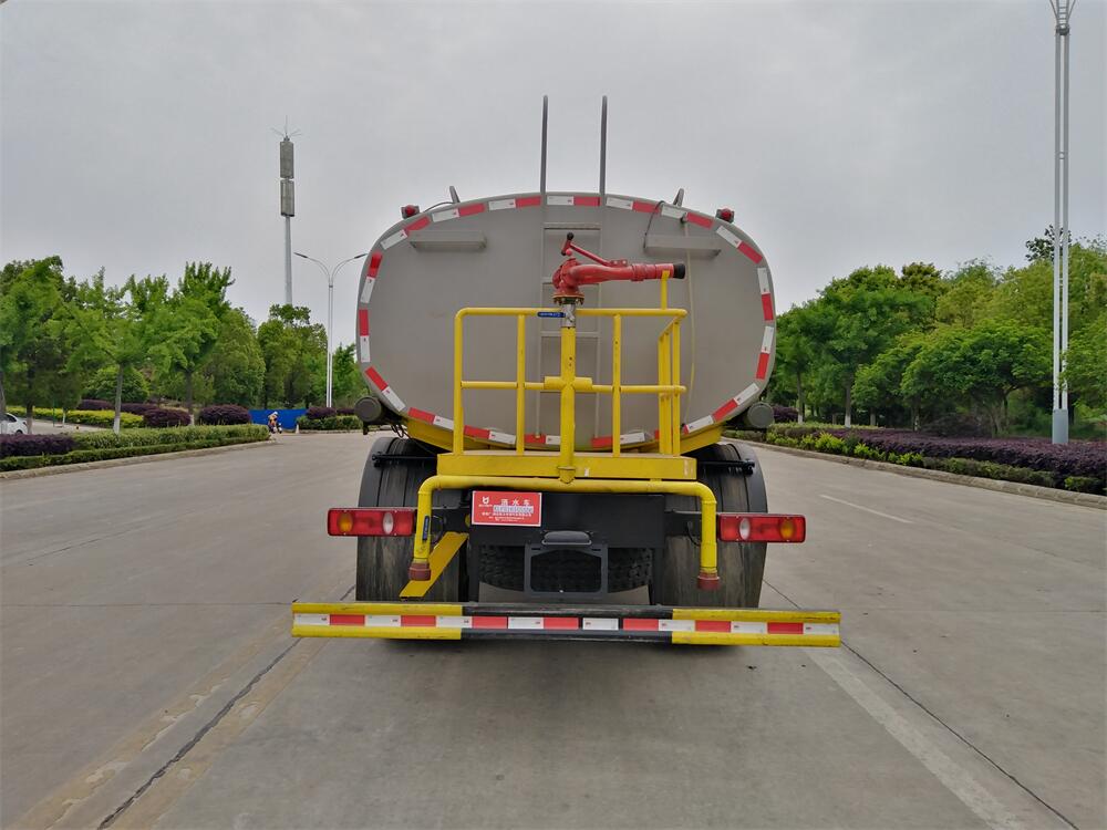 灑水車前裝有鴨形噴嘴或圓頭沖嘴,后面裝有圓柱開灑水噴嘴或蓮蓬頭噴嘴,后部有一工作平臺,裝配有水炮。后部還可裝8個噴嘴(選裝)。