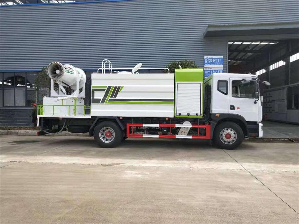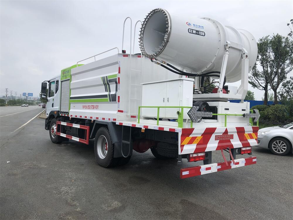 上裝配置:罐體容積為 12立方,選配風(fēng)送式霧炮機(jī)組射程30米、40米、50米、60米、80米、100米、120米霧炮,罐體鋼板為4mm碳鋼Q235材質(zhì),罐內(nèi)隔板具有防波作用,以減輕汽車行駛時(shí)罐體液體沖擊,罐體及整車外形尺寸按照公告。帶大功率專用灑水泵,泵可自吸自排,整車前沖、后灑、側(cè)噴、帶65消防接口,后平臺(tái)配CLW-50、CLW-60、CLW-80、CLW-100、CLW-120型風(fēng)送式霧炮機(jī)組;罐體前封頭配大功率柴油發(fā)電機(jī)組;前封頭帶水位計(jì),后平臺(tái)主管路帶1寸澆花接口,后爬梯。帶兩根輸水管及陰陽端。罐體顏色:銀/灰/綠,罐體兩側(cè)噴“多功能抑塵車”字樣,貼反光標(biāo)示。