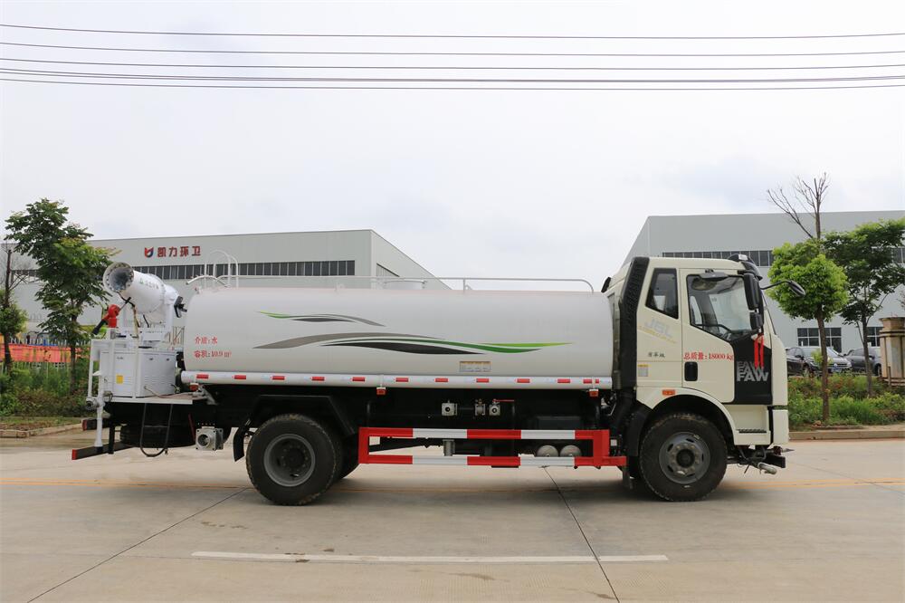 主要由發(fā)動機帶動變速箱,變速箱上安裝的取力器帶動灑水泵,灑水泵產(chǎn)生動力,將罐體內(nèi)部的液體通過管網(wǎng)噴灑出去。工作范圍:自吸高度:≥7m,灑水寬度:≥14m,**大射程:≥28m;可調(diào)節(jié)成柱狀,射程≥28m;也可調(diào)節(jié)成霧狀,射程≥5m。