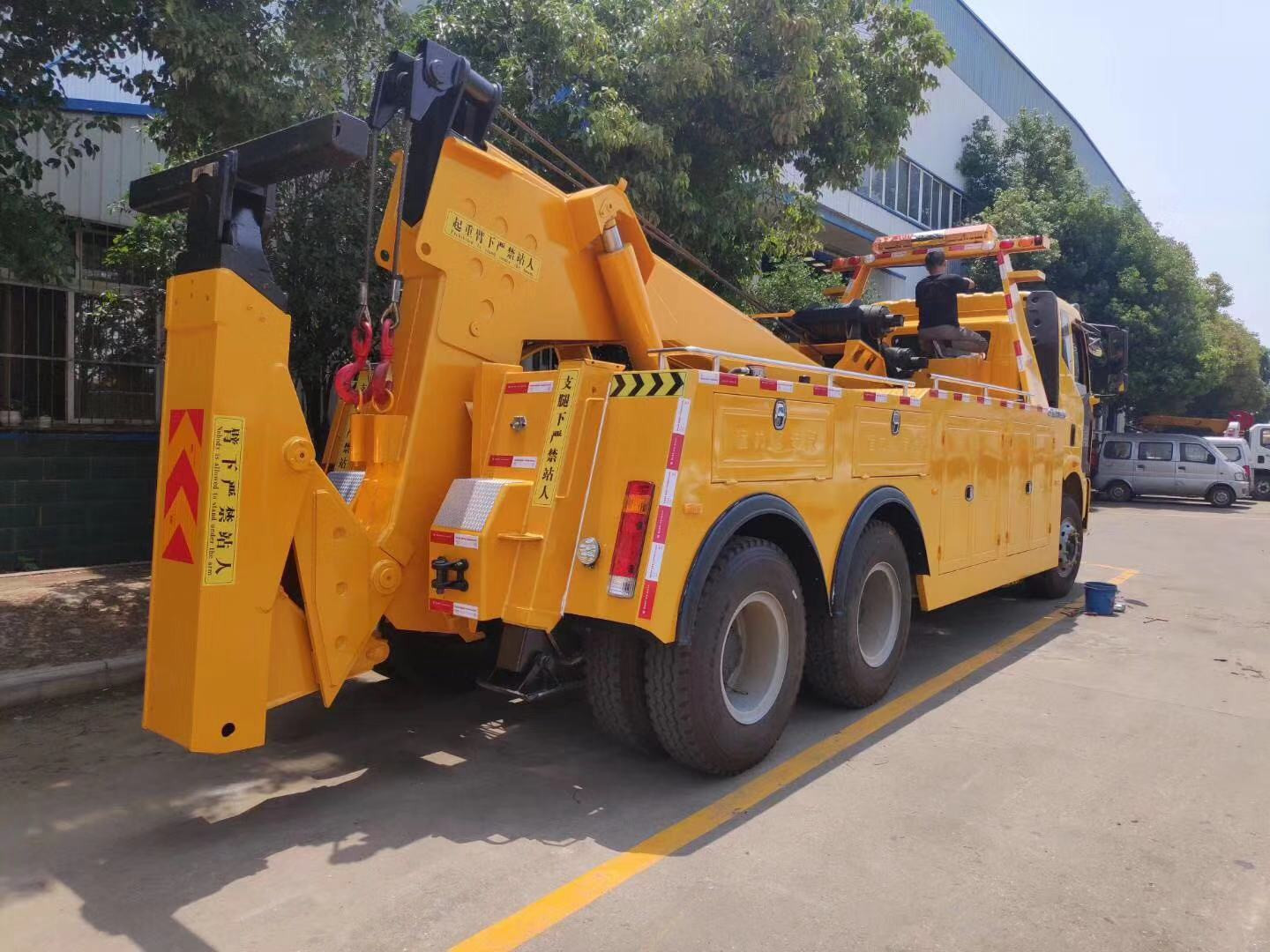 16T16D上裝或20T20D上裝,二節式六邊型吊臂,三節托臂,分體式車廂,雙側聯動操作裝置,,兩個十噸液壓卷揚,四十五米鋼絲繩,直徑18MM,配四套鋼叉,一套拖叉套,一套鋼板吊耳拖叉,一套抱胎裝置.**燈一套,**氣管總成一套,捆綁鏈條兩根;(16T16D上裝標配2個8噸卷揚)