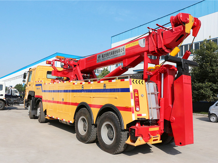 30噸或50噸360度旋轉上裝,三節式六邊型吊臂,三節托臂,分體式車廂,雙側聯動操作裝置,搖控操作裝置一套,前保險杠有配重,后工作燈三支,兩個十五噸液壓卷揚,四十五米鋼絲繩,直徑18MM,配四套鋼叉,一套鋼板吊耳拖叉,一套抱胎裝置.**燈一套,**氣管總成一套,捆綁鏈條兩根。
