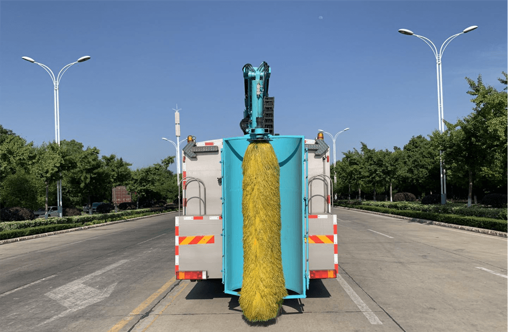 HCQ5250TXQDF6隔音屏清洗車的基本工作原理是利用安裝在回轉(zhuǎn)支承的折疊筆架上的直徑為1000MM,長2000MM的高速旋轉(zhuǎn)(385R/MIN)的圓柱滾刷一邊噴射洗滌劑與清洗,一邊滾刷,能連續(xù)清洗2M寬的墻面。由于洗刷都安裝在回轉(zhuǎn)支承上可以左右旋轉(zhuǎn),所以墻面清洗車可在不換向的情況下,洗刷兩邊的墻面。此外洗刷還可以清洗路標(biāo)、廣告牌、高架橋等。本隔音屏清洗車的液壓、電氣元件采用國際**產(chǎn)品,性能優(yōu)良、工作可靠。