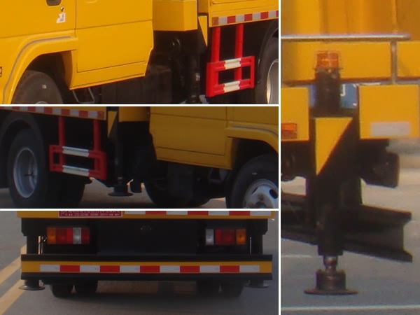 吊鉤為選裝件;前伸440mm;側面防護及后下部防護裝置材料材質:Q235,連接方式:焊接加螺栓連接;后下部防護裝置斷面尺寸(寬贅?:30?00(mm),離地高度:440mm;ABS及其**器型號為:APG3550500A4,生產廠家為:浙江亞太機電股份有限公司.