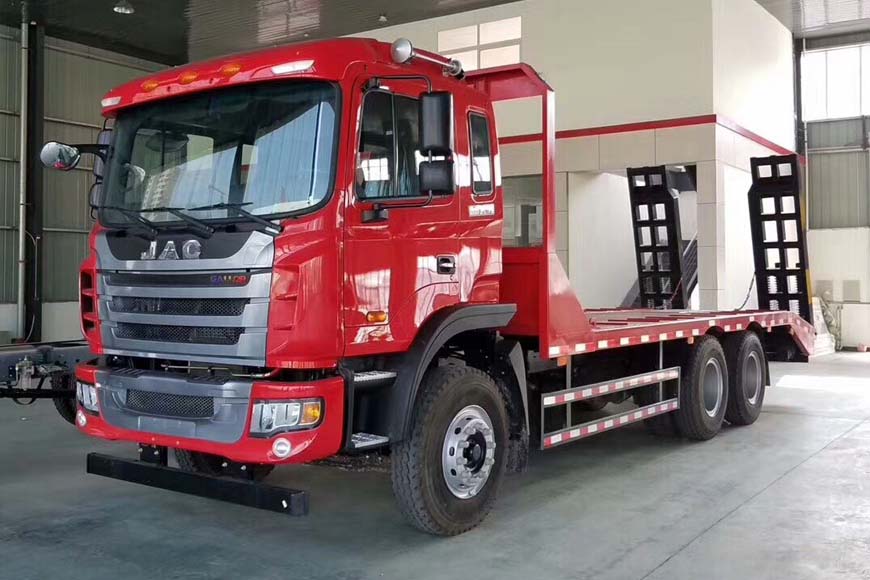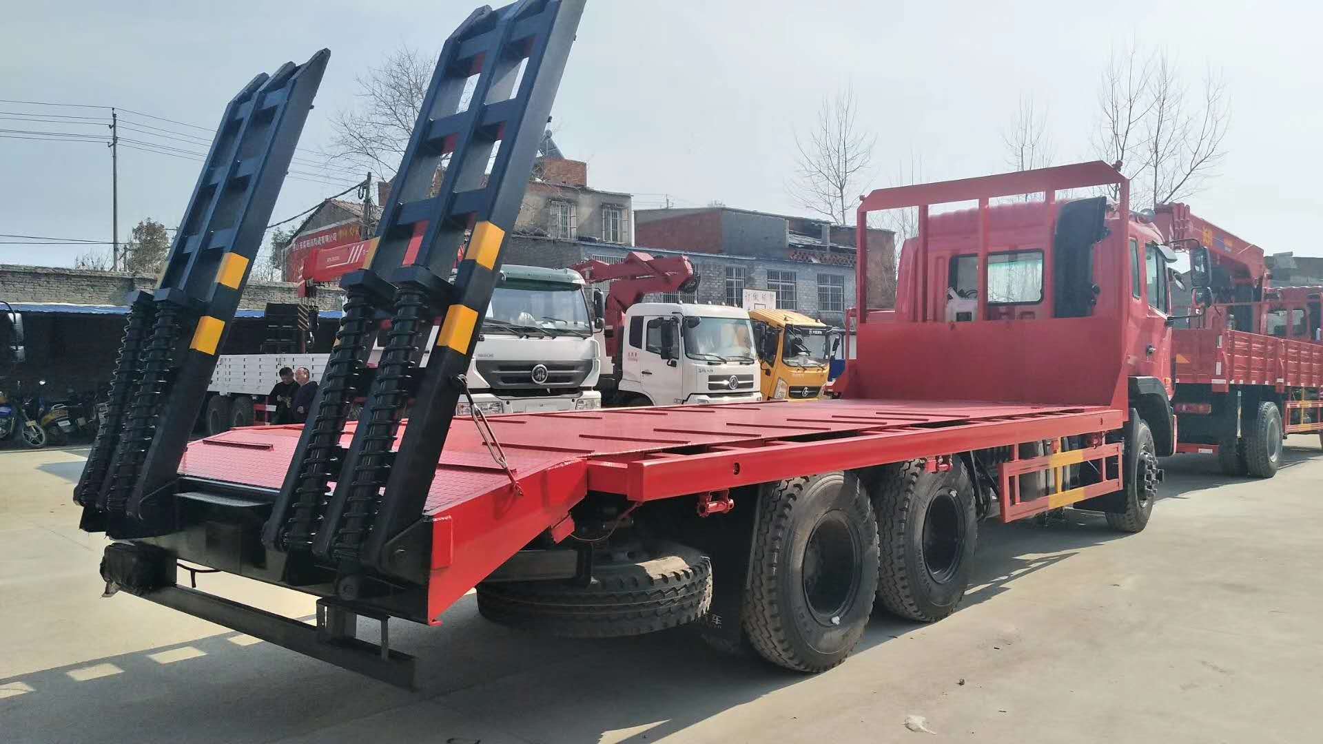 上裝采用八毫米花紋鋼板,120套100方管做橫梁,加強雙簧爬梯,可拉30噸以下挖機。