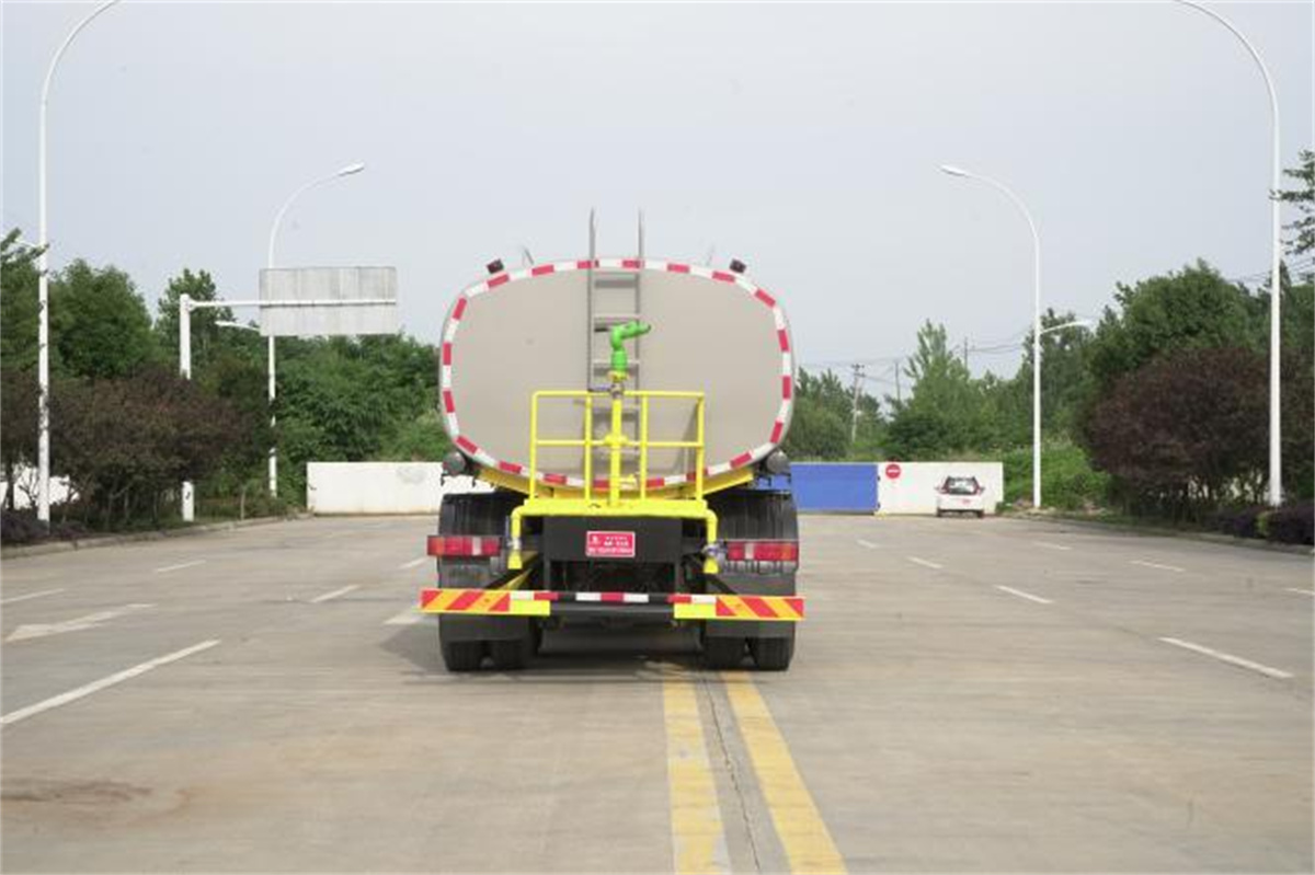 灑水車前裝有鴨形噴嘴或圓頭沖嘴,后面裝有圓柱開灑水噴嘴或蓮蓬頭噴嘴,后部有一工作平臺,裝配有水炮。后部還可裝8個噴嘴(選裝)。